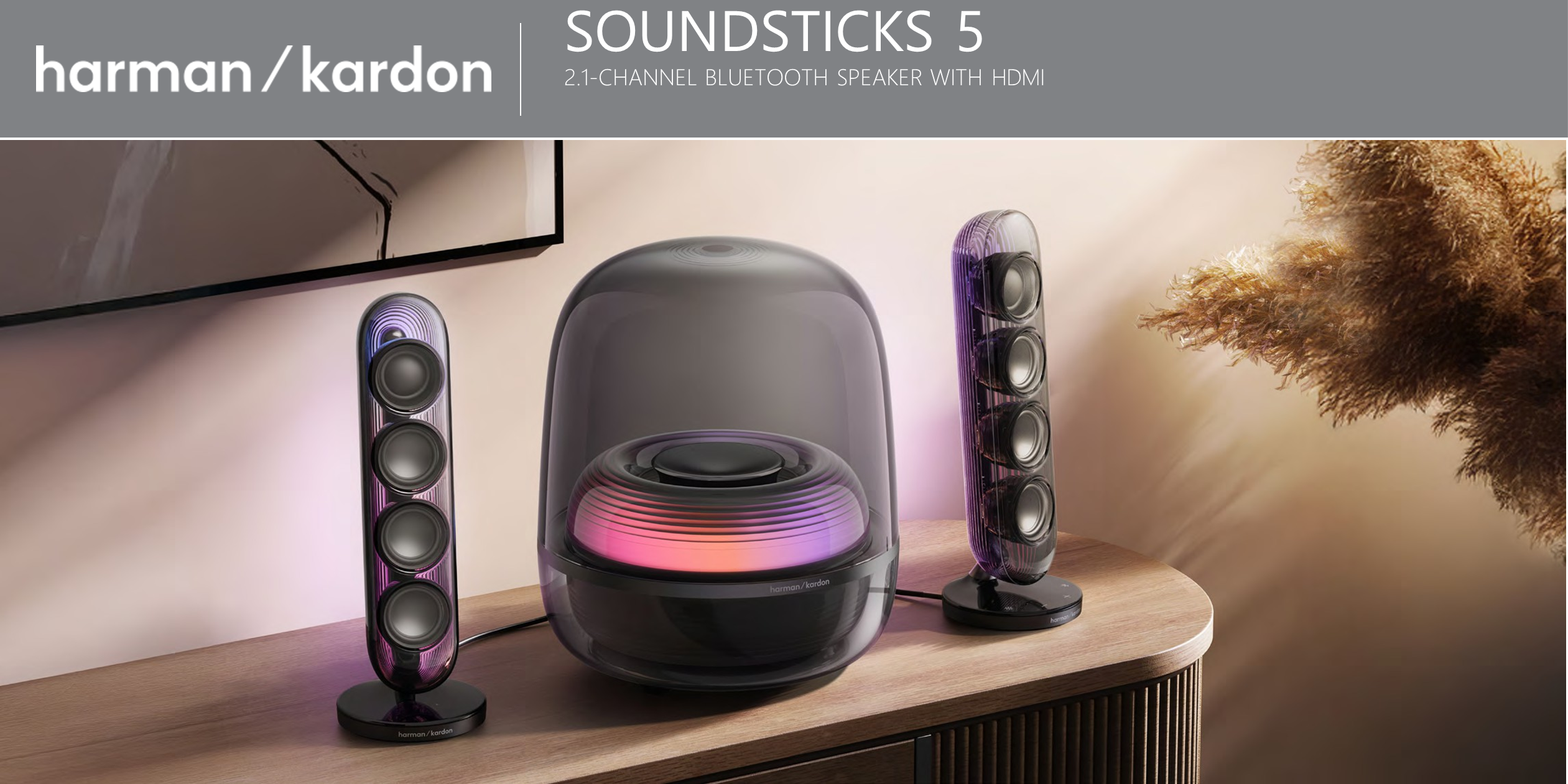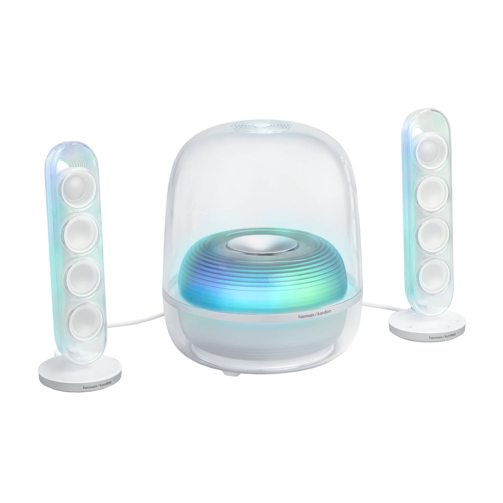 SoundSticks 5 ispunjava dom bogatim zvukom, ambijentalnim svjetlom i bezvremenskim dizajnom. Opuštajuća večera s prijateljima uz glazbu koja teče jednako lako i neprimjetno kao i razgovor. Ugodna večer s playlistom koja stvara atmosferu dok zanimljiva rasvjeta stvara umirujuću atmosferu. Sa svojom prepoznatljivom prozirnom kupolom i elegantnim, elegantnim krivuljama, Harman Kardon SoundSticks 5 unosi bezvremenski stil u svaku prostoriju. Satelitski zvučnici i subwoofer stvaraju svjetlosni show bogat bojama i dinamičnim pokretom, transformirajući iskustvo slušanja.